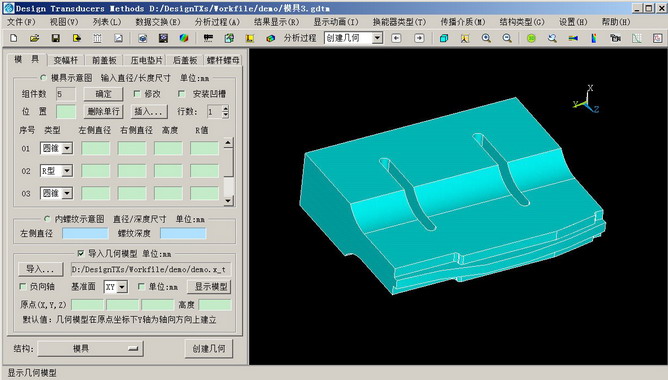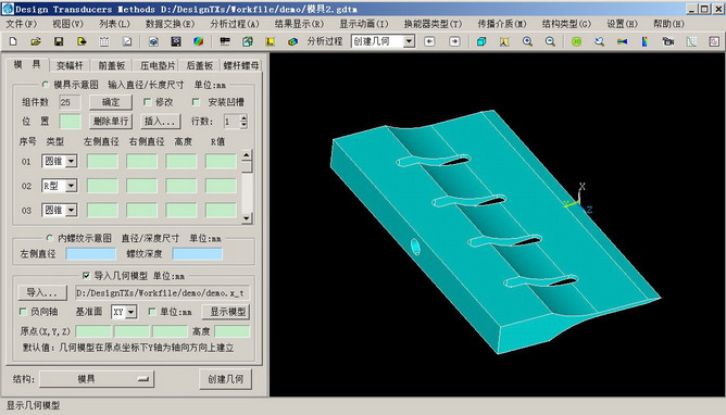 超聲模具設(shè)計(jì),我們用超聲系統(tǒng)設(shè)計(jì)軟件,實(shí)現(xiàn)理論分析和設(shè)計(jì)定型。針對(duì)超聲模具、工具頭、變幅桿以及模具和變幅桿裝配體進(jìn)行理論分析和設(shè)計(jì),吸收了傳統(tǒng)的等效法優(yōu)點(diǎn),結(jié)合有限元法,使得有限元法從深?yuàn)W理論算法轉(zhuǎn)變成具有工程實(shí)際應(yīng)用,從而成為結(jié)構(gòu)工程師必備的設(shè)計(jì)、分析工具。