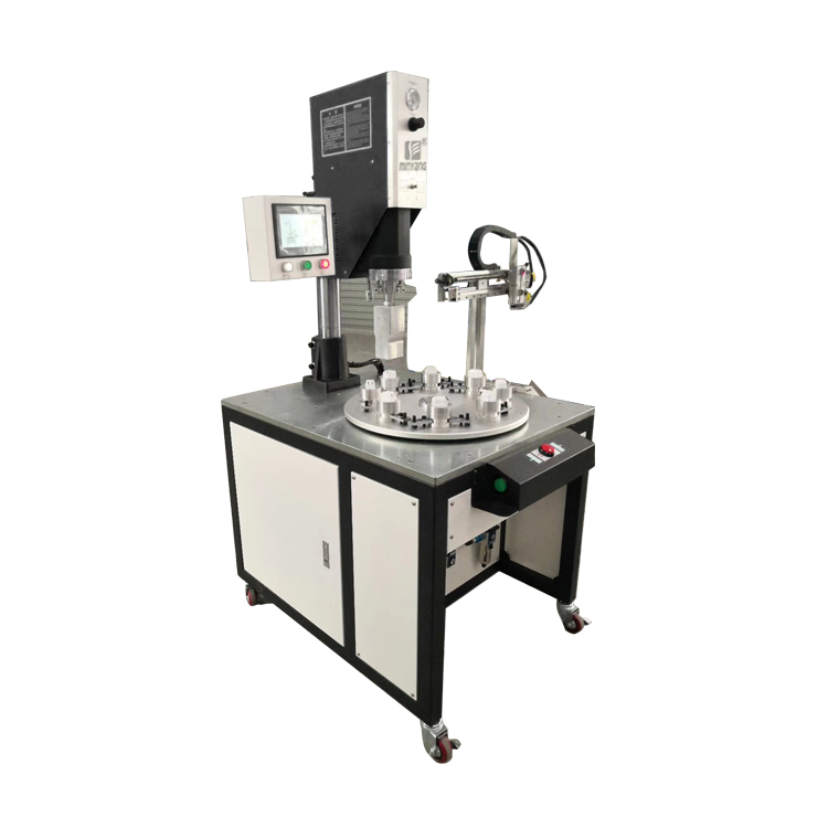 為此,銘揚超聲波設備有限公司研發了轉盤式防偽瓶蓋全自動超聲波焊接機,實現了生產的完全自動化,杜絕了瓶蓋二次污染,降低了勞動強度,大幅提升了產品合格率,生產效率大幅度提高,為大規模的自動化焊接鋪平了道路1,氣動機械手的研制機械手通常應用于單一、重復動作的場合來代替人工操作,從而節省人的勞動,解決人工操作疲勞現象。組合式防偽瓶蓋的焊接件不規則,因此適于使用氣動機械手用于工件的自動循環搬運。分選、翻轉、上料、卸料及自動精確定位,為了達到高效生產的目的,本機使用雙超聲波焊接頭。分選器實現雙滑道。,由于瓶蓋焊接件的焊接部位較輕,經過分選后,焊接部位朝上,不利于焊接機焊接。采用了翻轉滑道,對焊接件進行方向的調整,使焊接部位朝下,可以和另一零部件方便快捷地焊接。