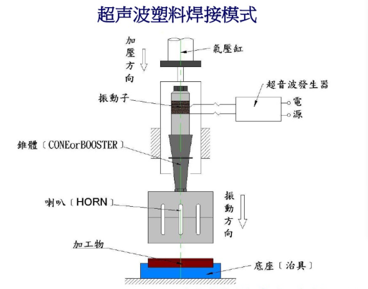 超聲波塑料焊接是常見的焊接工藝,可適用于眾多行業(yè),例如醫(yī)療環(huán)保(無紡布過濾),電源適配器外殼,汽車內(nèi)外飾件,塑料玩具精密電子塑料等都可用超聲波焊接機(jī)。由于超聲波塑料焊接速度快,無高溫火花,安全環(huán)保的特點,在民用塑料產(chǎn)品中得到了極大的推廣。超聲波塑料焊接節(jié)能環(huán)保無污染,成本低效率高,焊接時間短,被焊接的塑料件表面無損壞,非焊接區(qū)域不發(fā)熱,容易實現(xiàn)自動化生產(chǎn),焊接參數(shù)均可通過軟件系統(tǒng)進(jìn)跟蹤監(jiān)控而減少故障,焊接方法有熔接法、碟合法、嵌入/埋植法、鉚接法、點焊法、點焊法、剪切法/切除法及成型法。